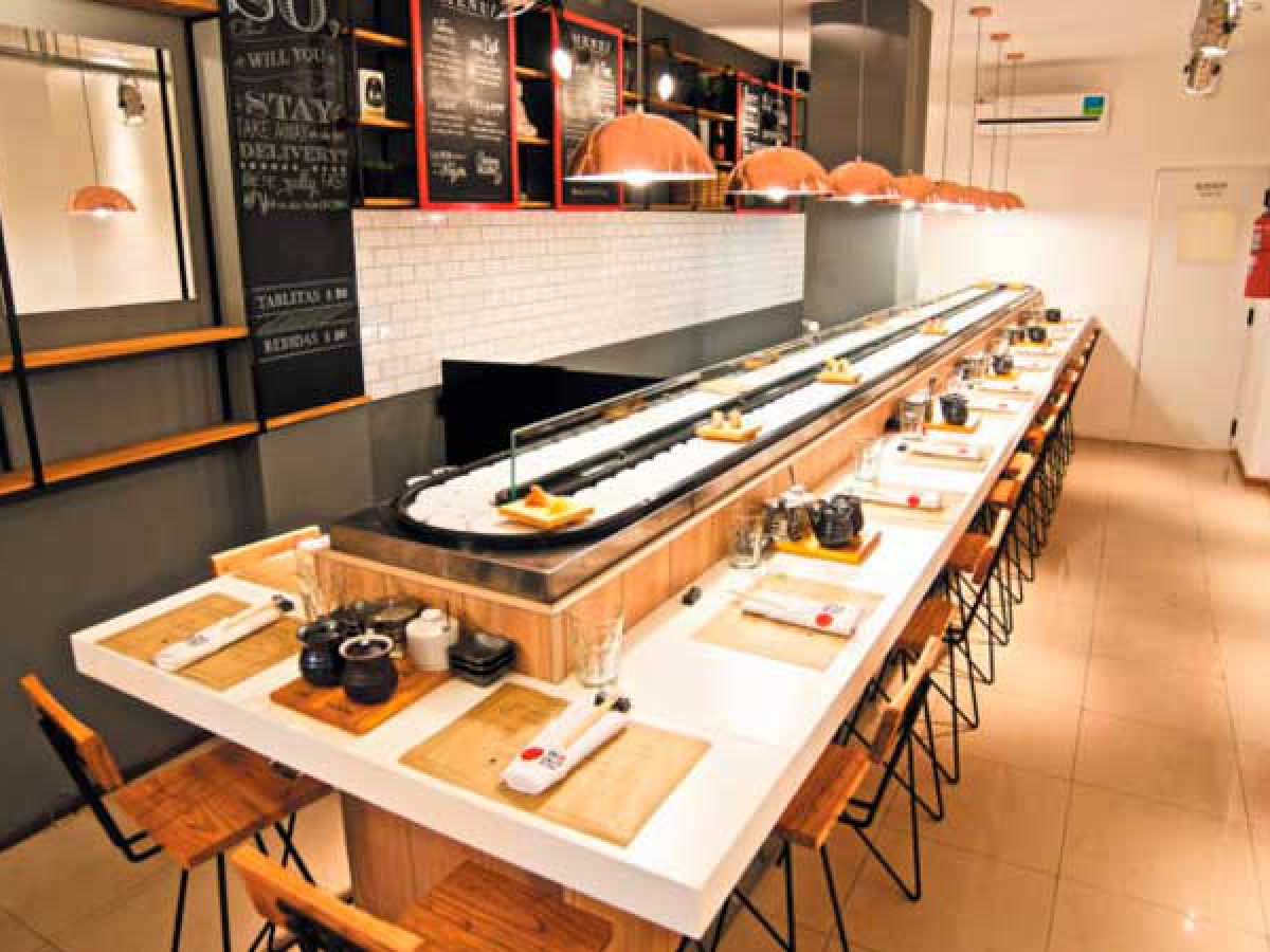 Sigue la tradición japonesa y newyorkina de la cinta sin fin donde vas elijiendo platitos. Hay un menú que siempre pido que incluye langostinos empanados y 3 tipos de sushi o ceviche. No es un lugar Fancy, sino más bien casual, donde compartiras barra con consumidores locales.